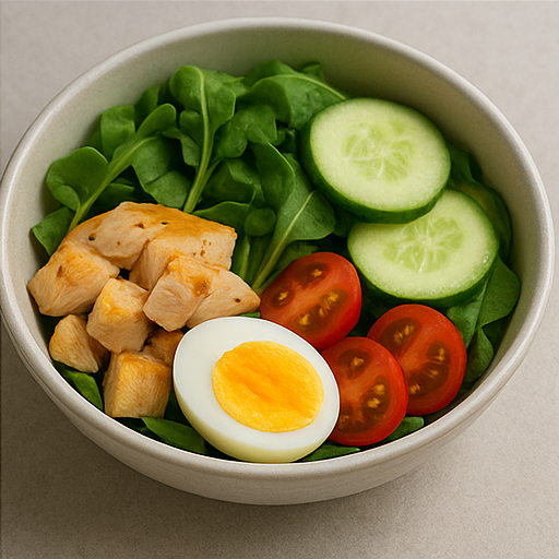 단백질 두 배 콤보죠. 질리지 않게 먹으려면 반숙으로 부드러움을 살리는 게 포인트예요. - 샐러드 위에 노른자 추가