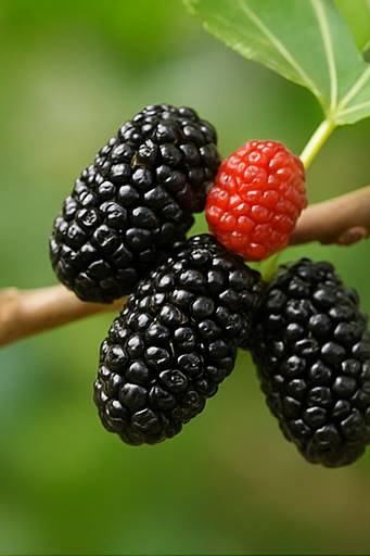오디는 사실 일반 베리(berry)가 아니라, 여러 작은 꽃이 모여 하나의 열매처럼 보이는 결합과(fruit multiple)에 해당합니다 .