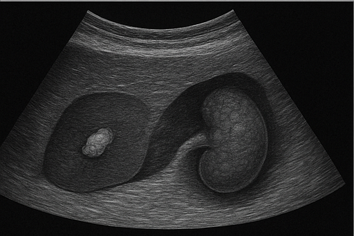 - 신장 결석: 신장에 생긴 돌로, 초음파에서 밝은 음영과 그림자로 나타납니다.