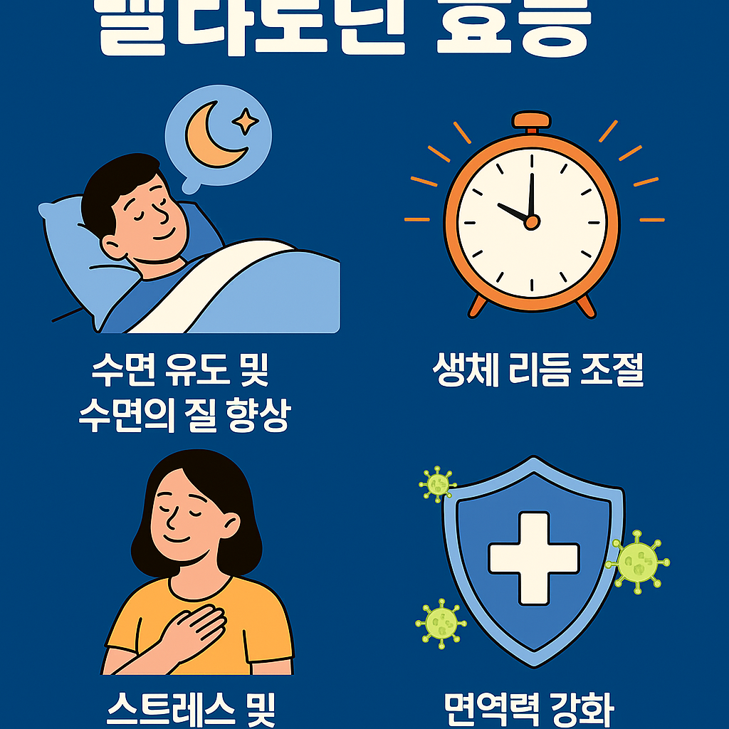 한마디로 멜라토닌은 ‘숙면 요정’이자 ‘리듬 지휘자’, ‘몸속 청소부’까지 맡고 있는 다재다능한 존재랍니다. 이런 친구는 절대 놓치면 안 되겠죠?