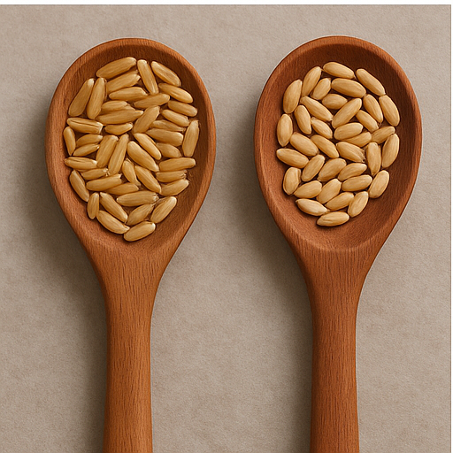 이제 “그럼 그냥 밀이랑 뭐가 다른데?” 하고 궁금해지시죠? 차이점이 꽤 많아요. 일단, 크기부터 달라요. 카무트는 일반 밀보다 알갱이가 훨~씬 크고 통통해요. 그냥 보기에도 뭔가 고급진 느낌이 들어요.