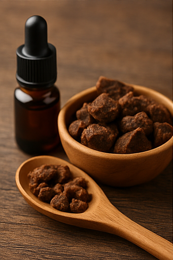 프로폴리스는 꿀벌들이 만든 특별한 천연물이에요. 벌들이 나무나 식물에서 수지(끈적한 진액)를 모아서, 자기들만의 효소랑 섞어 만든 게 바로 이 프로폴리스인데요, 벌집 틈새를 메우거나 해로운 균이 침입하지 못하게 막는 데 사용해요. 마치 벌들의 "자연 방패" 같은 역할을 하죠!