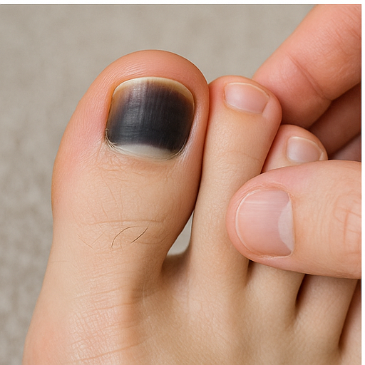 특히 조용히 일어나는 ‘반복 압박’이 문제일 수 있습니다. 눈에 띄는 사고는 없었는데도, 계속 누적되다 보면 발톱 밑에 멍이 생기거든요. 이 멍이 까맣게 보이면서 발톱 전체가 변색돼 버리는 거죠. 이럴 땐 “이거 왜 이래?” 하고 깜짝 놀라실 수도 있지만, 사실 흔한 일이랍니다.
