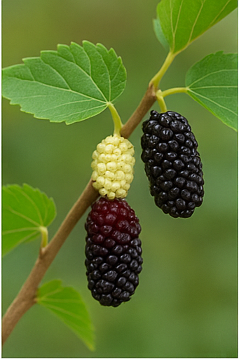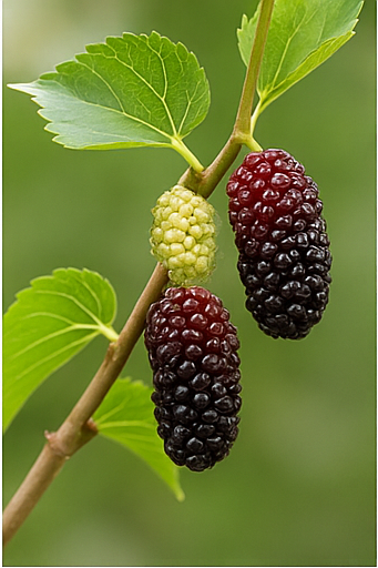 오디는 뽕나무(학명 Morus spp.)에서 자라는 과실로, 길쭉하거나 포도처럼 뭉쳐나는 작은 열매입니다. 어릴 땐 초록빛, 익어가면 자주색에서 검은색으로 변하며 과즙이 많고 달콤하면서도 은은한 신맛이 나는 것이 특징입니다 .