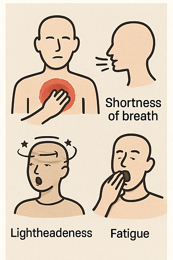 - 이런 증상은 허혈성 심장질환, 즉 협심증이나 심근경색의 신호일 수 있어요.