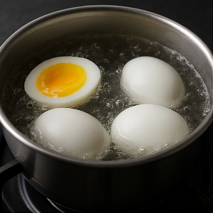 끓는 물에 계란을 넣고 6분 정도 삶으면 흰자는 단단해지고 노른자는 흐르듯 부드러워요. 입 안에서 사르르 퍼지는 그 느낌! 7분까지는 노른자가 살짝 꾸덕한 정도로, 간장과 찰떡궁합이죠.