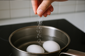 삶는 물에 소금을 넣으면, 계란 껍질이 살짝 더 단단해지는 효과가 있어요.