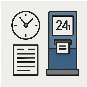 - 또는 정부24 사이트나 행정안전부의 ‘무인민원발급기 찾기’ 서비스를 이용하면, 지역별로 설치 위치와 운영 정보를 확인할 수 있어요.