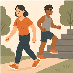 - 운동 종류는 다양해도 괜찮아요. 걷기, 수영, 춤, 심지어 계단 오르기나 집안일도 충분히 효과적이에요 .