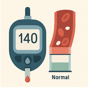 식사 후 2시간 뒤 혈당은 보통 140 mg/dL 이하로 돌아와야 정상이에요. - 종합적으로 보면