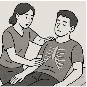 깊게 숨을 들이쉬고 기침하는 것은 폐렴이나 폐 일부가 붕괴되는 것을 막는 데 정말 중요해요. 아플 때 숨을 참다 보면 숨이 얕아지고, 이러면 폐가 제대로 펴지지 않아 위험할 수 있어요. 그래서 베개를 흉부에 살짝 대고 기침하거나 호흡 연습을 하면 통증도 줄고 폐도 잘 펼 수 있어요.