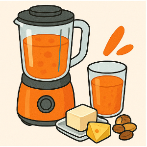 당근에 들어 있는 베타‑카로틴은 지용성 영양소예요. 그래서 기름과 함께 먹으면 체내 흡수가 훨씬 잘 돼요. 예를 들어 올리브유, 견과류, 아보카도 또는 버터 등을 소량 곁들이는 것만으로도 흡수율이 눈에 띄게 향상된답니다 .