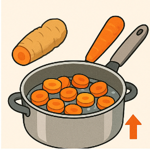 조리하면 당근의 세포 벽이 무너지면서 베타카로틴 같은 영양소가 더 잘 흡수된다고 해요. 특히 삶거나 데치면 조리된 당근의 항산화 베타카로틴이 더 많아진다는 연구가 있어요. 또, 어떤 연구에 따르면 볶은(또는 살짝 익힌) 당근은 베타카로틴의 생흡수율이 약 75%인 반면, 생당근은 11% 수준에 불과하다고 해요.