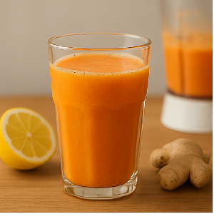 예를 들어 당근 두세 개에 레몬 반 개와 생강 한 조각을 넣고 갈아 보세요. 꿀이나 설탕 없이도 상큼한 맛이 살아나는 음료가 완성돼요 .