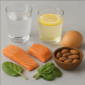 - 저녁: 균형 잡힌 식사 (소금 조절, 비타민 B 포함)