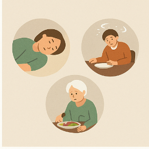 - 식후 저혈압: 식사 후 혈액이 소화기관으로 몰리면서 혈압이 내려가는 현상