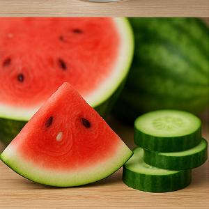 수박과 오이는 수분 함량이 90% 이상으로, 물 대용으로 먹기 딱 좋아요. 또 포만감도 있고, 전해질까지 함께 공급해요 .
