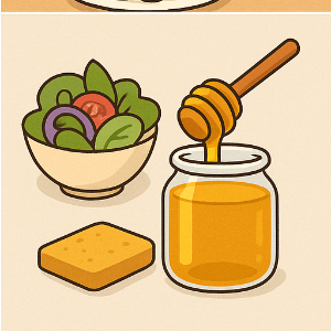 - 드레싱이나 소스에 꿀 조금 더하기 — 샐러드에, 또는 구운 채소나 드레싱에 소량 섞으면 풍미가 살아나요.