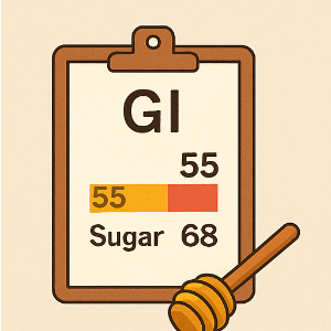 - GI 차이: 설탕의 GI는 약 68로 비교적 높지만, 꿀은 약 55~58의 GI를 보여서 혈당이 오르는 속도가 설탕보다 느린 편이에요 .