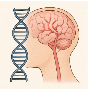 모야모야병은 원인이 확실히 밝혀지진 않았지만, 유전적 요인이 매우 강하게 관련 있는 질환이에요. 특히 RNF213 유전자의 R4810K 변이가 한국과 일본 환자들에서 매우 높게 나타난다는 연구가 있어요. 일반인보다 가족성 환자에선 훨씬 더 높죠 . 서양 환자에서는 다른 드문 변이들이 관련 있는 경우도 있다고 해요 .