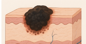 흑색종은 ‘피부암’의 한 형태예요. 전체 피부암 중에서 차지하는 비율은 낮지만, 가장 치명적이고 빠르게 퍼지는 특성을 가지고 있어요 . 특히, 비교적 드물지만 발생하면 다른 피부암보다 주변 조직이나 전신으로 전이될 가능성이 훨씬 크죠 .