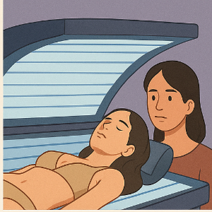 실내 태닝베드도 위험해서, 35세 이하에서 태닝베드를 자주 사용한 사람은 흑색종 위험이 무려 75%나 높아진다는 연구 결과도 있어요.