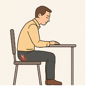 오랫동안 앉아 있으면 꼬리뼈에 무리가 많이 가요. 특히 딱딱하거나 좁은 의자에 오래 앉아 있으면 꼬리뼈가 직접 눌리면서 통증이 생기기 쉽죠. 이런 압력이 반복되면 꼬리뼈 주변 연부조직에 염증과 통증이 발생할 수 있어요.