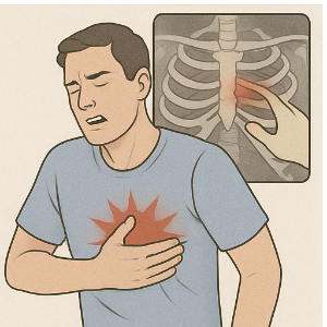 갈비뼈를 살짝 눌렀을 때 통증이 심하고, 부종이나 압통이 나타날 수도 있어요. 어떤 분들은 ‘바스락거리는 느낌’도 느낀다고 해요—막 부서지는 그 느낌이요!