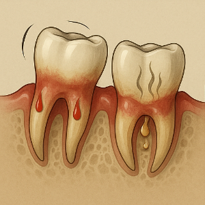 • 잇몸 붓기, 고름, 뿌리 노출, 치아 흔들림