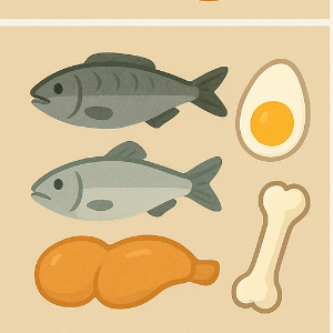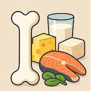 • 멸치, 연어(뼈째), 두부, 녹색잎 채소, 견과류 (칼슘·마그네슘·비타민 K 등)