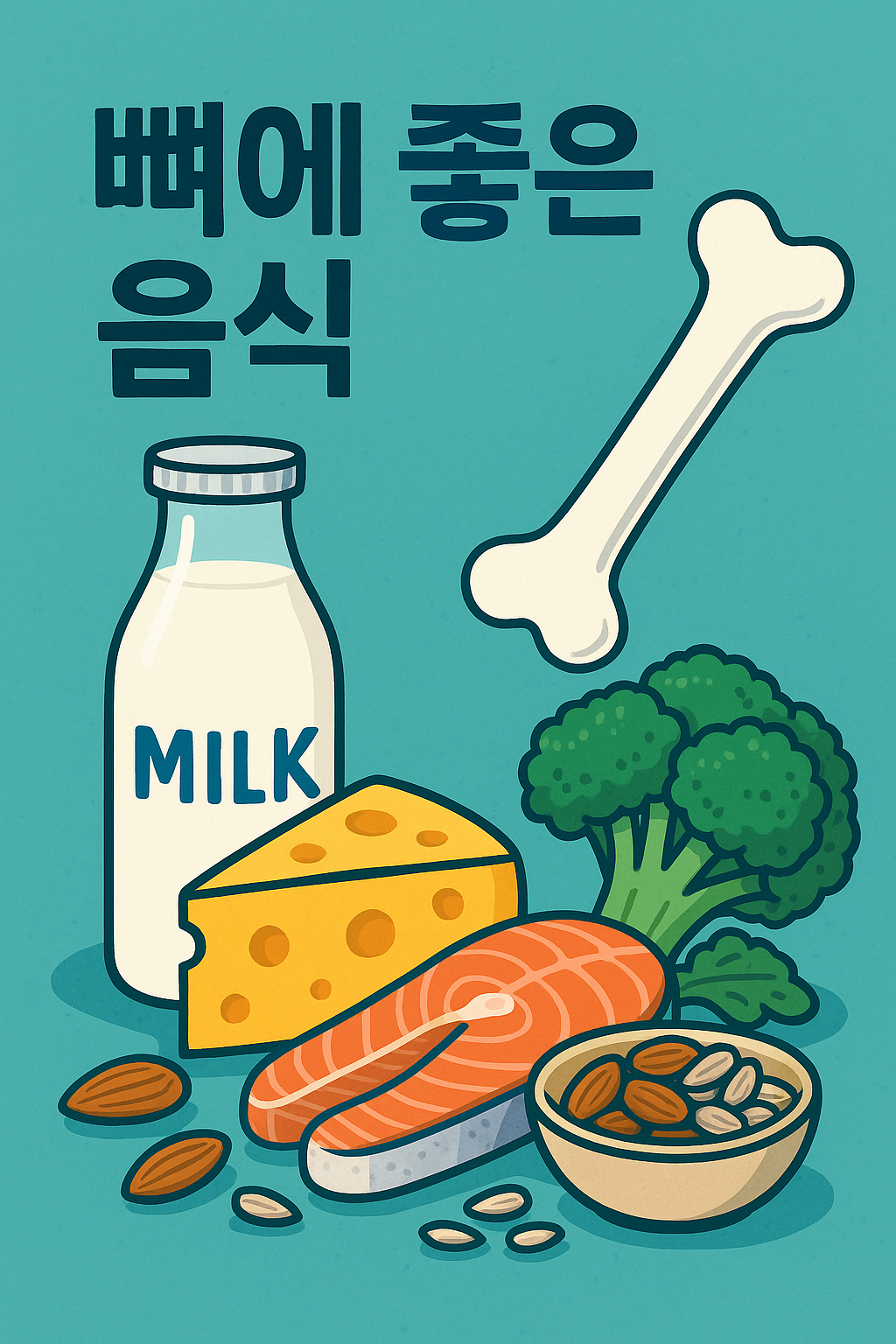 이렇게 유제품, 등 푸른 생선, 잘 흡수되는 채소, 견과류, 콩류 등을 균형 있게 먹으면 뼈 건강에 정말 든든한 밥상이 완성돼요. 다양한 음식으로 골고루 챙겨보세요!