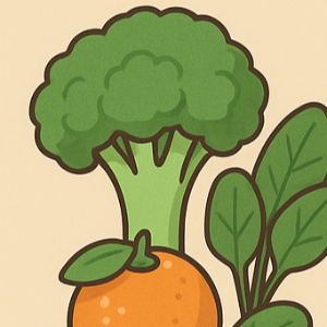 채소와 과일(시금치, 브로콜리, 오렌지 등)
