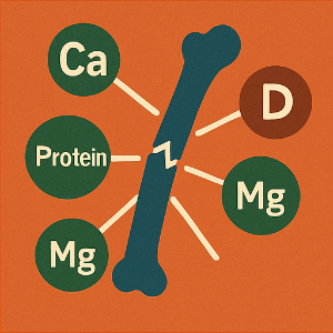 마그네슘은 칼슘과 비타민 D가 제대로 작동하도록 돕는 보조 요정 같은 존재예요. 뼈 조직의 구조를 안정시켜 주고, 뼈의 밀도를 유지하는 역할을 하죠 . 마그네슘이 부족하면 뼈가 약해질 수 있다는 이야기도 있어요.
