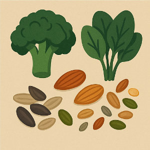 초록 채소는 뼈 회복에도 활력소 역할을 해요. 브로콜리는 칼슘과 비타민 C가 풍부하고, 시금치처럼 어두운 색 잎채소는 비타민 K와 마그네슘도 챙길 수 있어요. 단, 시금치에는 '옥살산'이라는 녀석이 있어서 칼슘 흡수를 방해할 수 있으니, 브로콜리나 케일 종류를 중심으로 먹는 게 더 좋아요 .