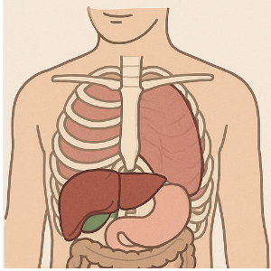 우리 몸을 배꼽을 기준으로 크게 네 부분으로 나누면, 오른쪽 위 쪽인 우상복부(RUQ)에 해당되요. 이 부위엔 중요한 장기들이 몰려 있어요. 구체적으로는 간의 오른쪽 엽, 담낭, 위의 유문 부위, 십이지장, 췌장의 머리, 오른쪽 신장 및 부신, 상행결장과 횡행결장의 오른쪽 절반이 포함됩니다.