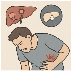 - 간 질환(간염, 지방간, 간경변 등)은 묵직하고 지속적인 통증을 유발할 수 있어요. 메스꺼움이나 피로감, 황달 같은 증상도 동반될 수 있습니다.