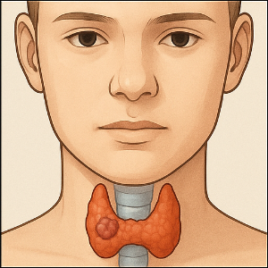 갑상선암이 시작되면 작은 혹, 즉 결절이 생기며 자라게 돼요. 초기엔 아프지 않을 수 있지만, 크기가 커지면 목 앞에 단단한 혹을 느끼게 될 수 있어요.