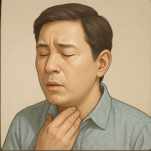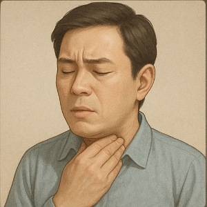 암이 진행되면 갑상선 주변 기관—예를 들어 기도나 식도 쪽을 압박하면서 숨쉬기 어려운 느낌이 들 수 있어요. 마치 빨대를 통해 숨 쉬는 듯한 답답함이 느껴질 수도 있죠. 또한, 특별한 감기 없이 계속되는 마른 기침이나 쉰 목소리도 나타날 수 있어요 .