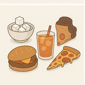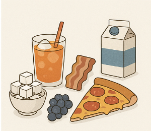 - 단 음료 및 초가공식품: 설탕 듬뿍 음료, 과자, 스낵 등 – 인슐린 저항성과 당뇨 위험을 높여요.