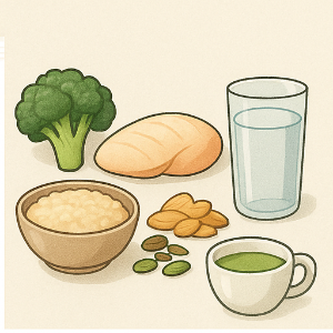 - 혈당 안정 및 영양 균형 도움: 생선, 견과류, 아보카도처럼 단백질이나 불포화지방이 풍부한 음식들은 혈당을 천천히 올리면서 에너지도 주고, 몸을 구성하는 데 꼭 필요해요 .
