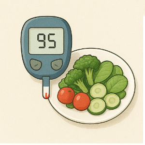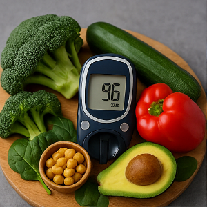 - 채소·통곡물·저지방 단백질·견과류·저당 과일, 물·무가당 차·저지방 우유 같이 혈당을 천천히 올리거나 안정시키는 음식들이 핵심이에요. 균형 잡힌 영양소와 섬유가 많아서 혈당 조절에 훨씬 도움이 됩니다 .