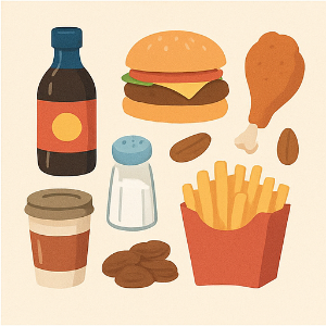 패스트푸드, 가공육(베이컨·소시지·햄), 냉동 식품, 캔 수프 등은 나트륨, 포화지방, 설탕, 보존제가 많고 건강에 이롭지 않아요. 이런 음식들은 혈압을 높일 뿐 아니라 장기적으로 심혈관 건강에 악영향을 줄 수 있어요.