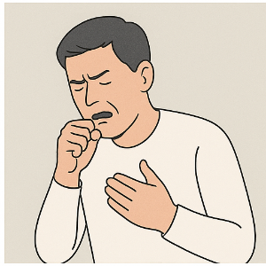 - 기침이나 피가 섞인 가래가 나올 수도 있어요 .