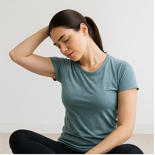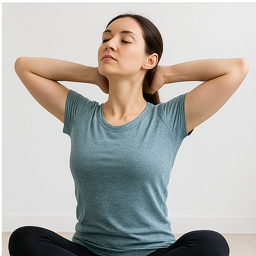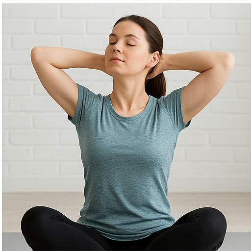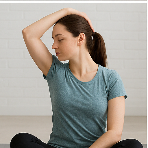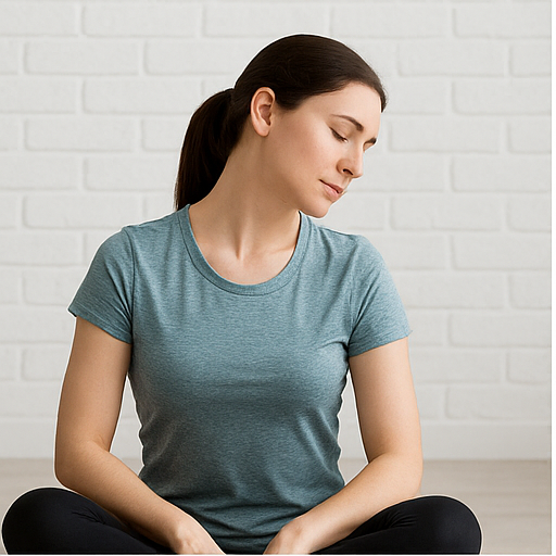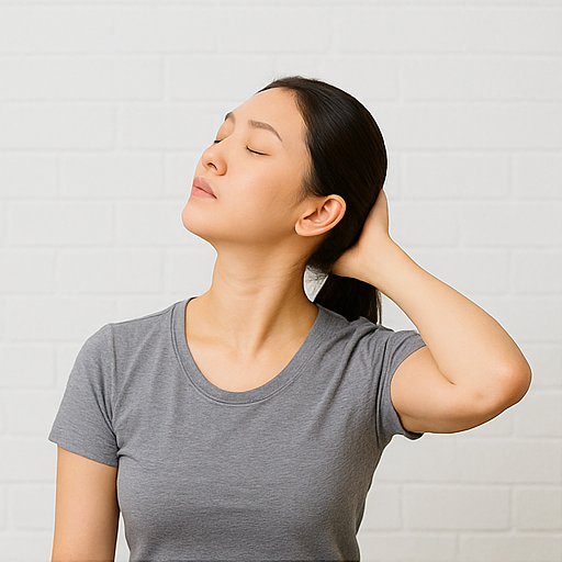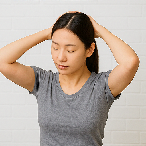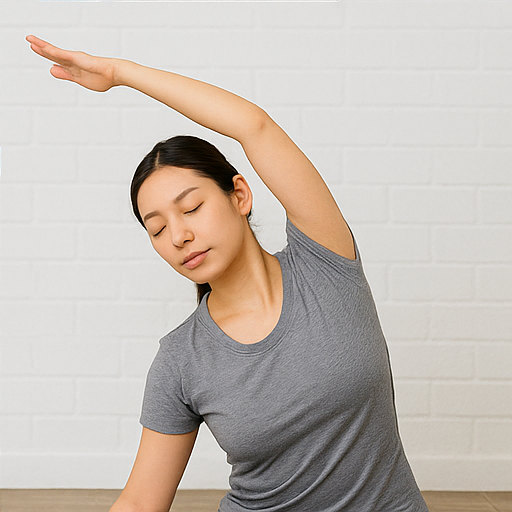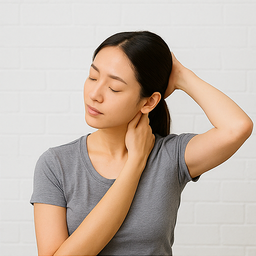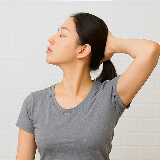 또 다른 좋은 스트레칭은 목 옆 근육(흉쇄유돌근, 승모근) 이완입니다. 오른손으로 머리를 오른쪽으로 살짝 당기며 목 왼쪽이 늘어나게 하고, 반대로도 반복합니다. 이때 어깨를 들지 않고 편안히 내려놓는 것이 중요합니다. 하루 2~3세트, 1회당 15~20초 정도 유지하면 좋습니다.