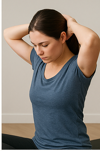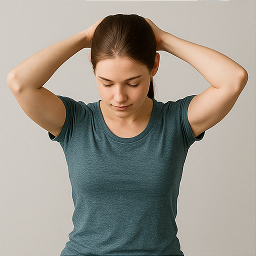 - 벽이나 손바닥을 이용해 머리를 앞·뒤·좌·우 방향으로 밀어주면서, 반대 힘으로 저항을 줍니다.