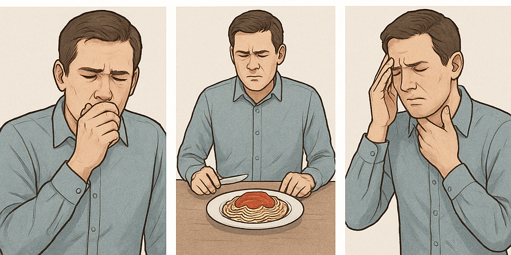 또 다른 대표적 증상은 위산 역류와 신트림입니다. 위 속 내용물이 식도로 올라오면서 입안이 시거나 신맛이 느껴질 수 있고, 트림이 잦아집니다. 일부 환자는 아침에 일어나자마자 역류 증상을 경험하거나, 밤에 잠을 잘 때 증상이 심해져 수면에 방해가 되기도 합니다.