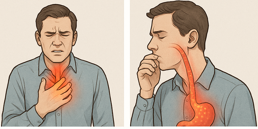 식도염에서 가장 흔하게 나타나는 증상은 속쓰림(heartburn)입니다. 가슴 중앙이나 명치 부위가 뜨겁게 타는 느낌이 들고, 때로는 가슴 통증으로 오인되기도 해요. 특히 식사 후, 눕거나 몸을 숙일 때 증상이 심해지는 경우가 많습니다. 이는 위산이 식도로 역류하면서 점막을 자극하기 때문입니다.