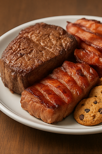육류 중에서도 기름이 좔좔 흐르는 부위들, 바로 소고기 갈비살, 베이컨, 햄 같은 녀석들이에요. 특히 베이컨은 구우면 고소한 냄새에 정신이 혼미해지지만… 사실 그 기름이 포화지방 덩어리예요. 한두 조각이면 모르겠지만, 매일 먹으면 혈관이 "나 좀 살려줘…" 할지도 몰라요.