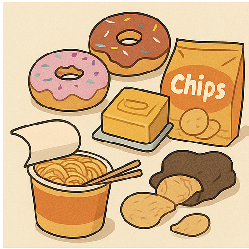 트랜스지방, 이름부터 뭔가 께름칙하죠? 이건 진짜 혈관한테 너무한 녀석이에요. 마가린, 쇼트닝, 과자, 도넛, 패스트푸드… 달콤하거나 바삭한 음식들에 숨어 있어요. 입에선 살살 녹지만, 혈관에선 딱딱하게 굳는 기름이에요.