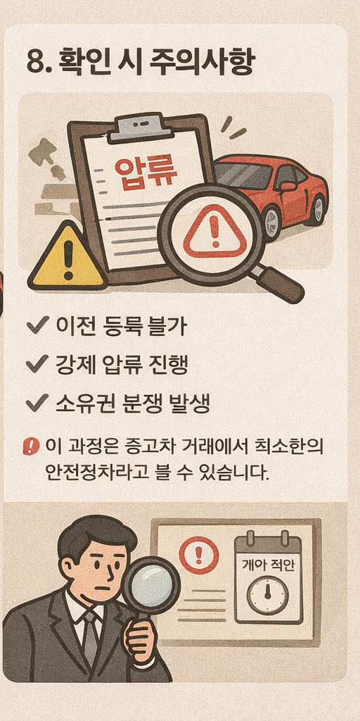 이 중에서도 압류 및 저당 관련 내용은 중고차 거래 전 반드시 확인해야 할 핵심 요소입니다.